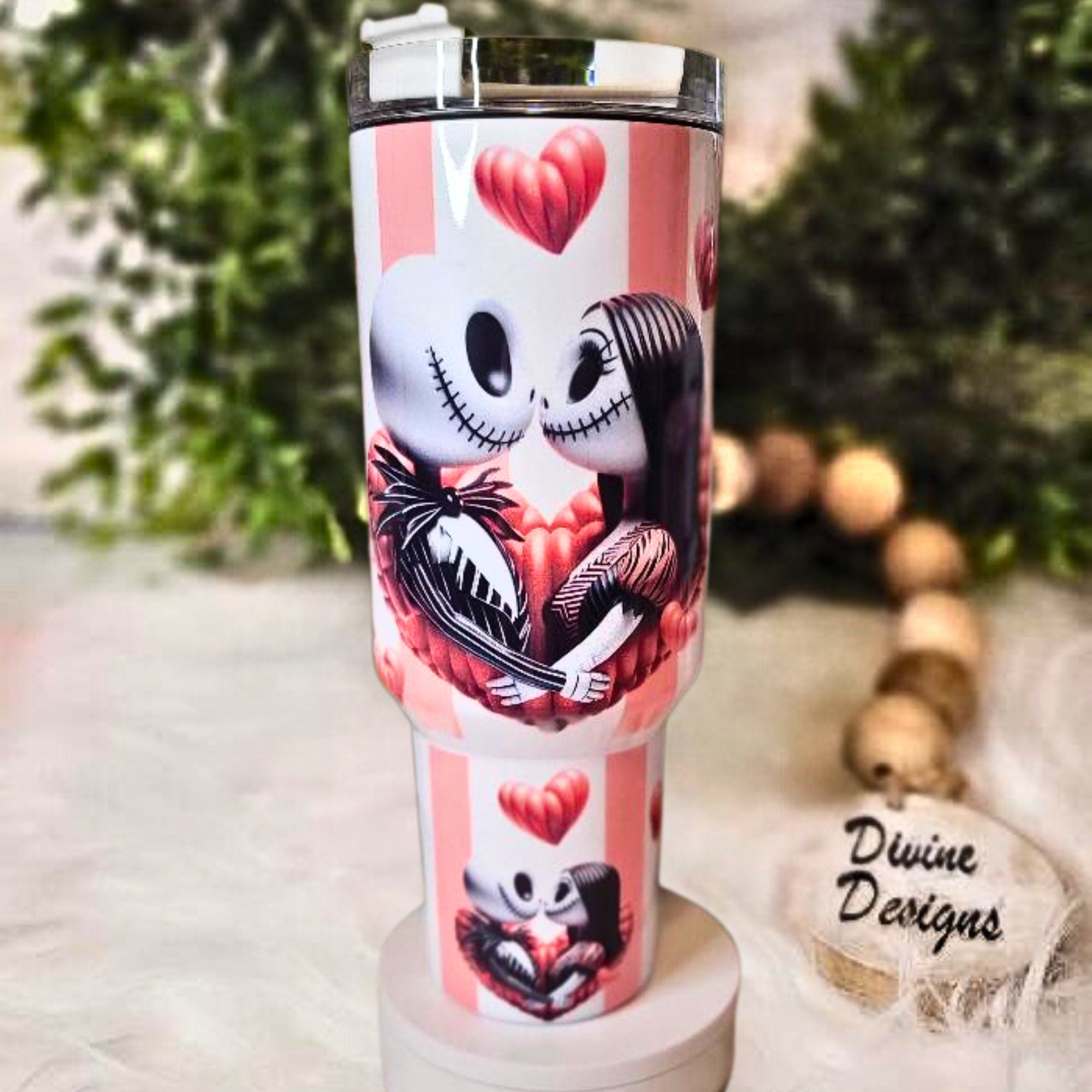 Jack Skellington & Sally "Love Until Death" 20oz Skinny Tumbler with Straw - Nightmare Before Christmas Inspired, Gothic Romance Drinkware, Fan Gift