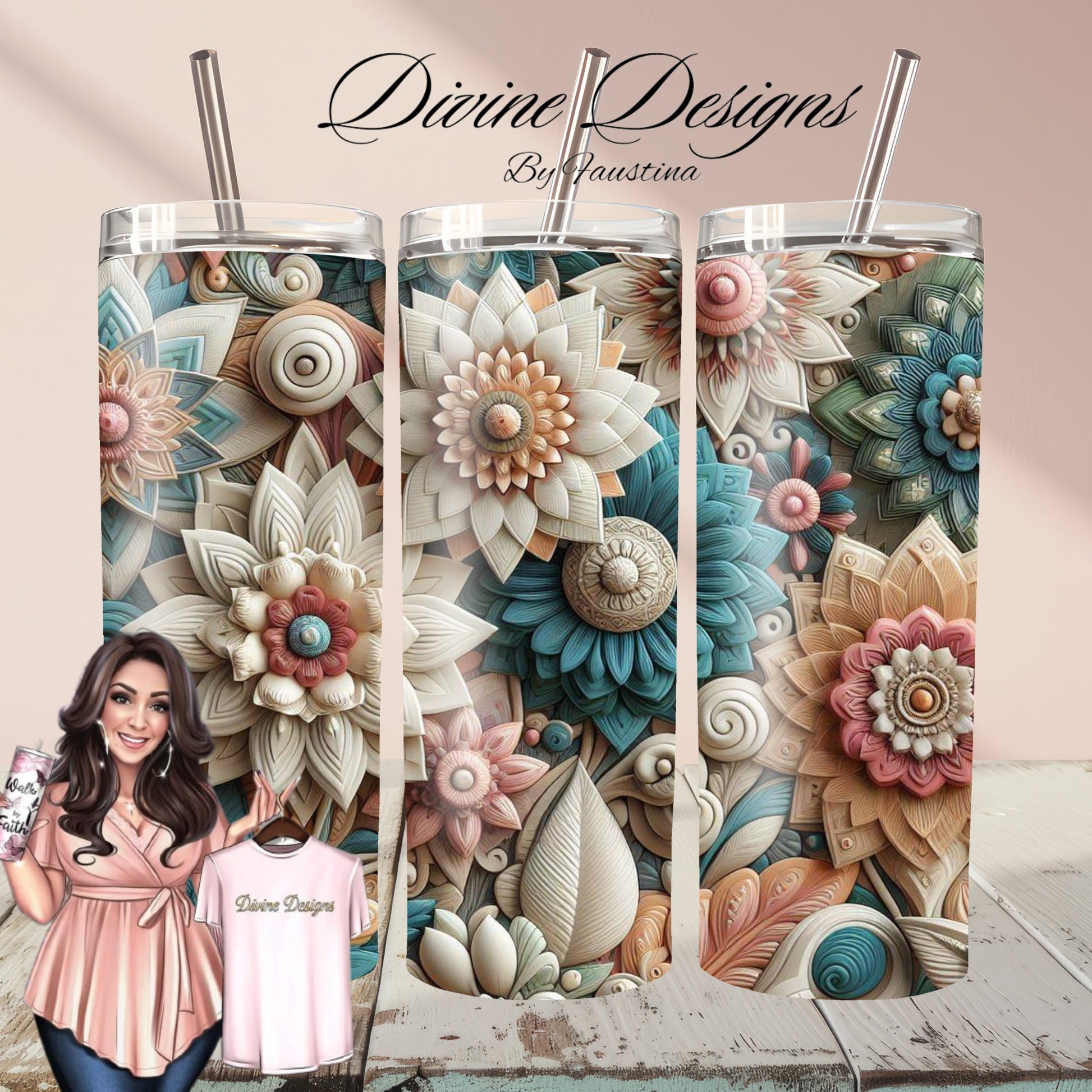 Be inspired by the beautiful boho floral design on this 20 oz skinny tumbler. Keep your drinks at the perfect temperature while on the go. Lightweight and durable, this tumbler is perfect for any adventure. Make a statement and stay refreshed with this must-have accessory!