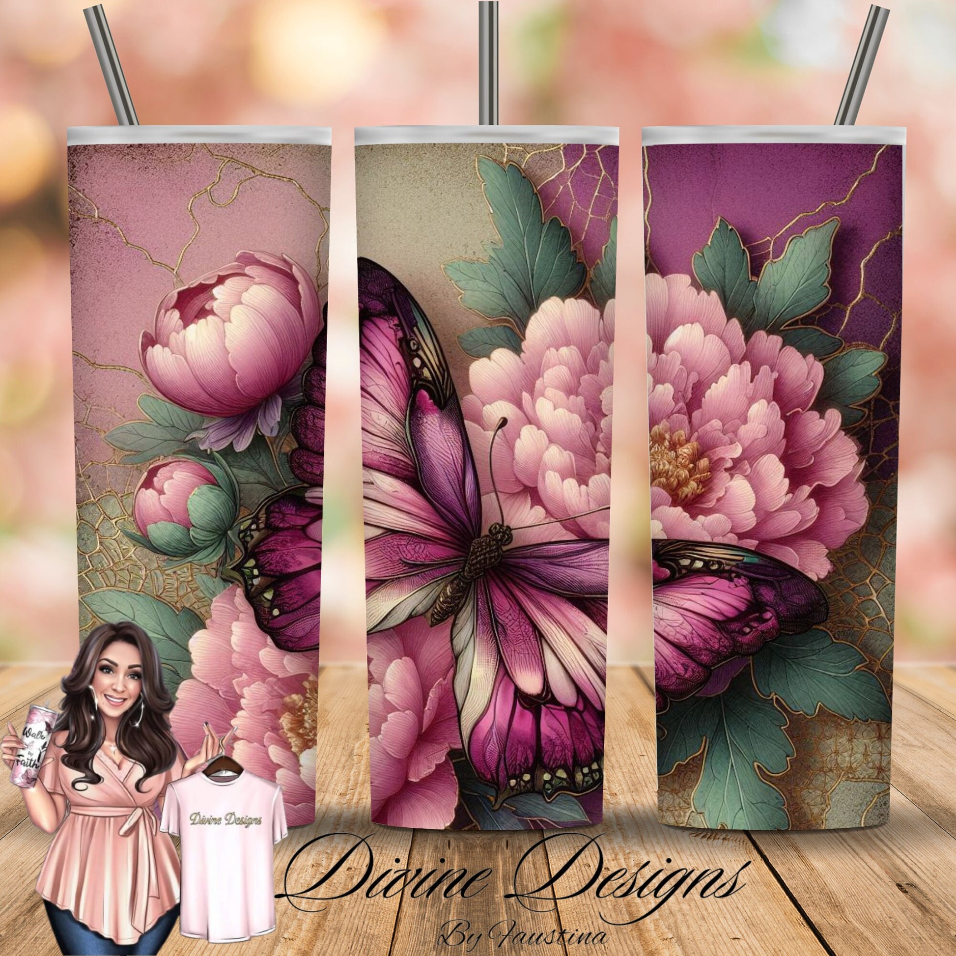 Indulge in the beauty of nature with our Butterfly Floral 20 oz Skinny Tumbler! This stainless steel tumbler features a delicate butterfly and floral design, keeping your drink hot or cold for hours. Hydrate in style while on the go, and let the enchanting design inspire your day.