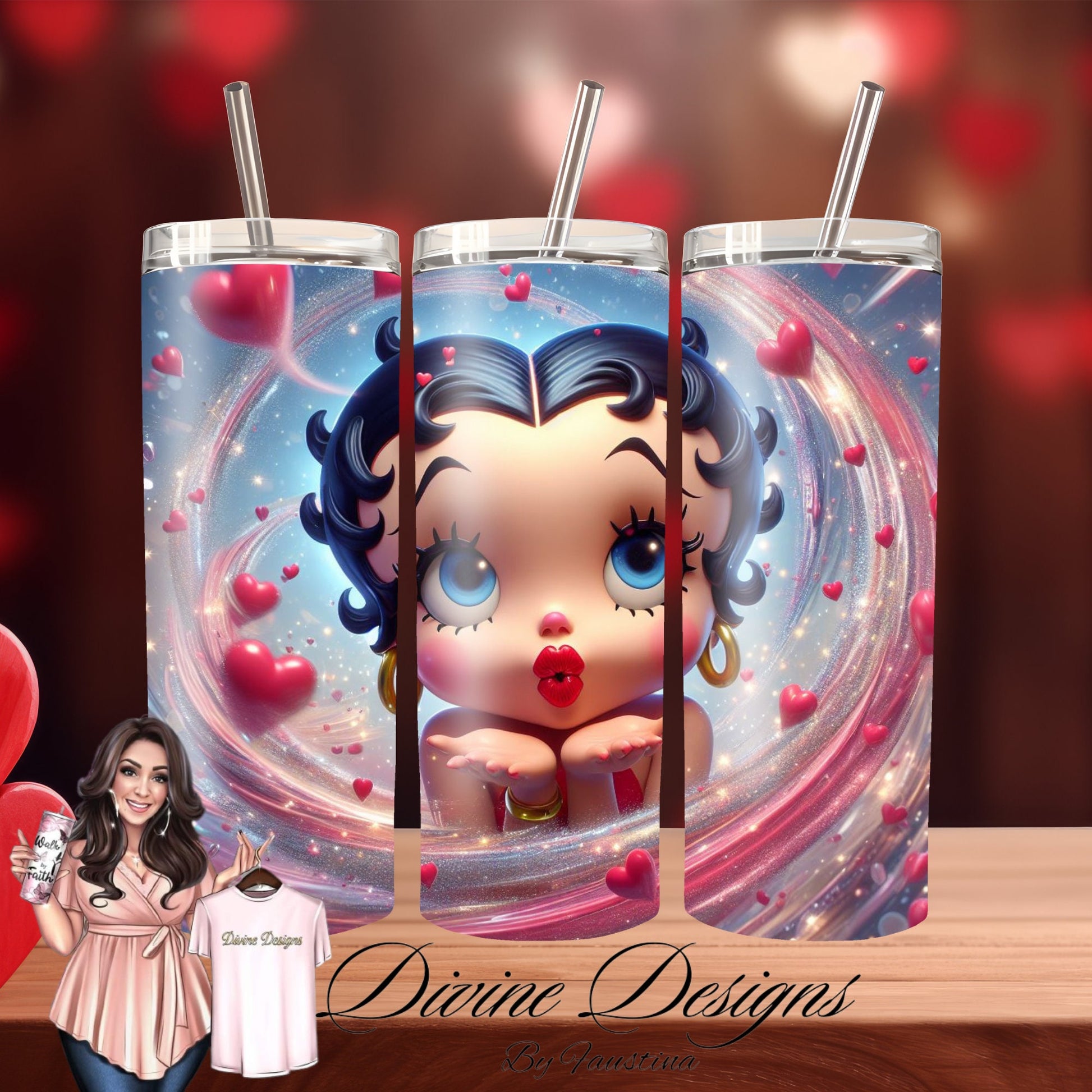 Betty Boop cartoon kiss 20 oz Skinny Tumbler