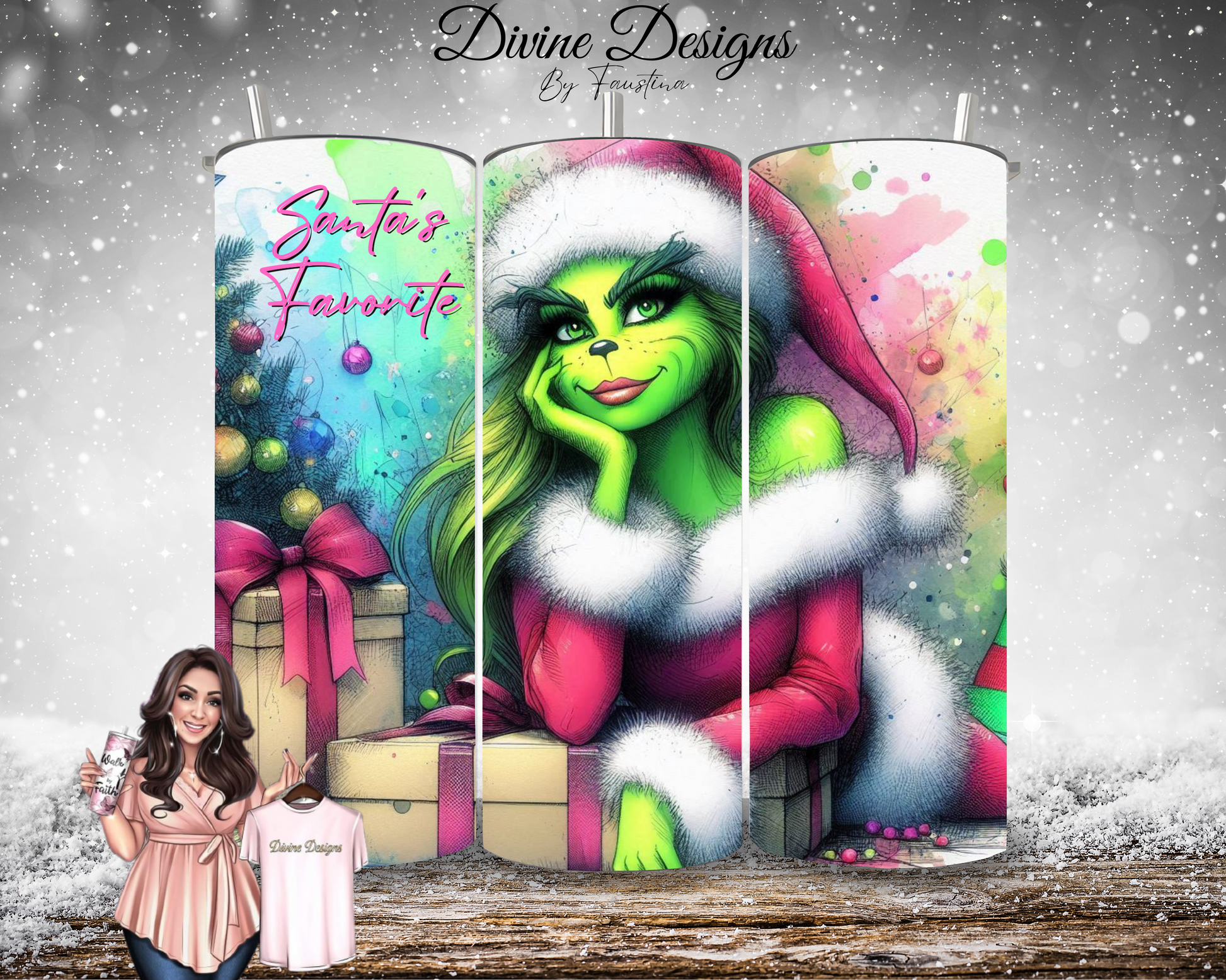 Get in the holiday spirit with our Christmas Female Grinch 200z tumbler! Keep your drinks warm or cold and spread some festive cheer. Perfect for on-the-go and a great gift for any Grinch fan. Don't be a scrooge, grab yours now! BE SANTA'S FAVORITE