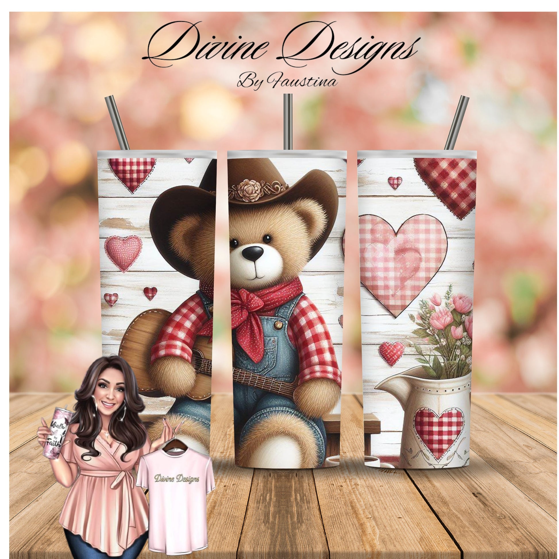 Cowboy Teddy bear 20 oz Skinny Tumbler