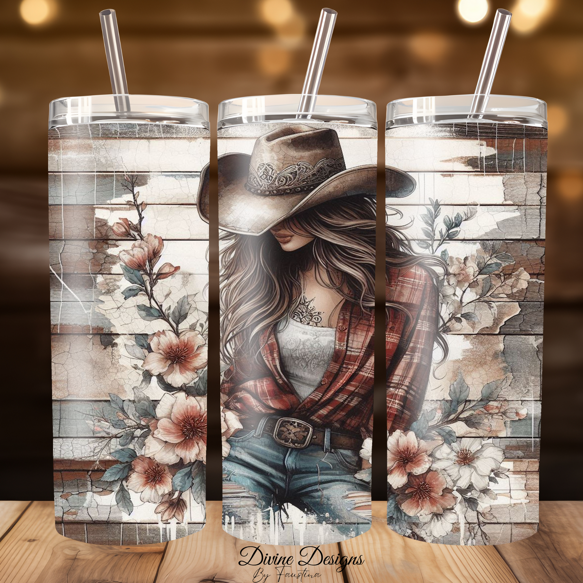 Stay hydrated in refined Western style with this elegant 20oz Cowgirl tumbler. Meticulously crafted with a sophisticated Western aesthetic, this premium vessel includes a secure lid and convenient straw for graceful sipping. The generous capacity ensures your beverages maintain their desired temperature throughout your distinguished daily endeavors.