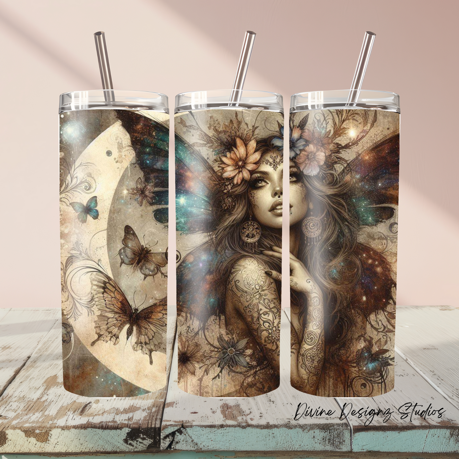 Introducing the Fairy Vintage 20oz tumbler, a stylish and convenient way to stay hydrated on the go. Made with a lid and straw, this tumbler allows for easy sipping and spill-free portability. The 20oz size is perfect for your daily dose of hydration, making it a must-have for any adventure. Stay hydrated in style with the Fairy Vintage tumbler.