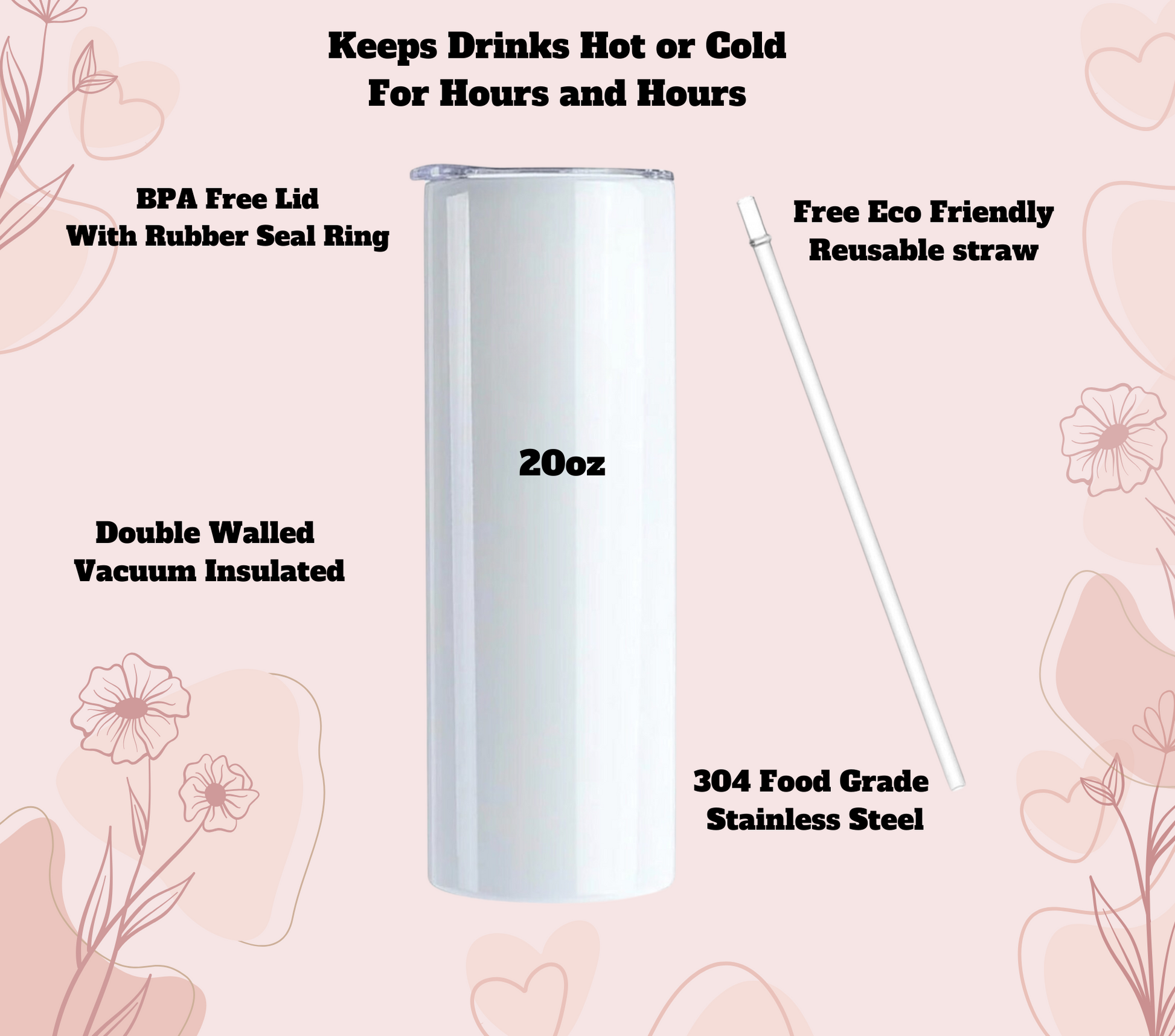Experience the ultimate in temperature retention with our High quality stainless steel Tumblers. Whether you prefer cold or hot beverages, our tumbler will keep them at the perfect temperature for up to 24 hours. Plus, this tumbler comes in a sleek white box, making it an ideal gift. Please note that all sales of this item are final.