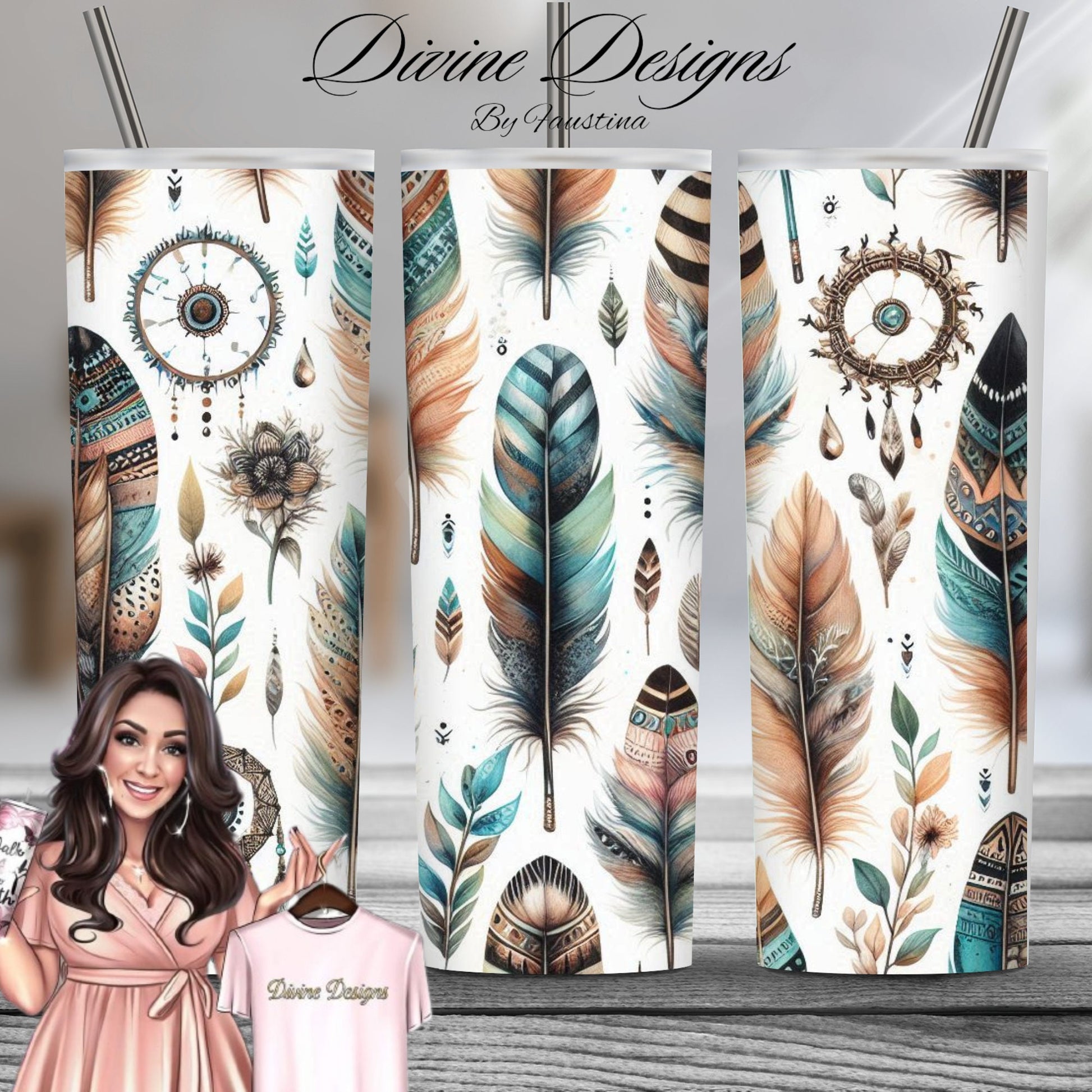 The stunning Feather Boho blue 20 oz Skinny Tumbler will elevate your daily drinks to a whole new level! Designed with a beautiful feather motif, this tumbler not only looks gorgeous but also keeps your drinks hot or cold for hours. Enjoy your favorite beverages in style and on-the-go with this must-have tumbler!