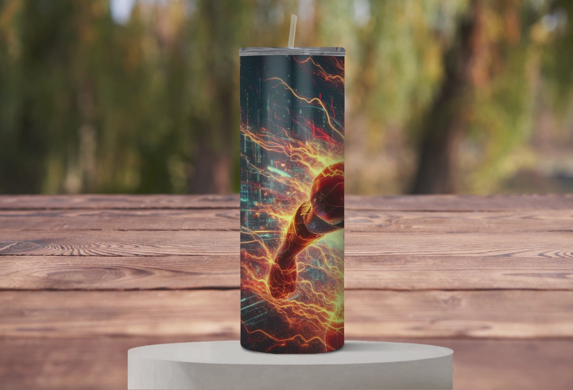This Flash superhero tumbler combines sleek design with practical functionality. Crafted with a secure lid and reusable straw, it ensures spill-resistant hydration on the go. Its vibrant Flash-themed exterior adds a refined touch for fans seeking both style and convenience in their daily routine.