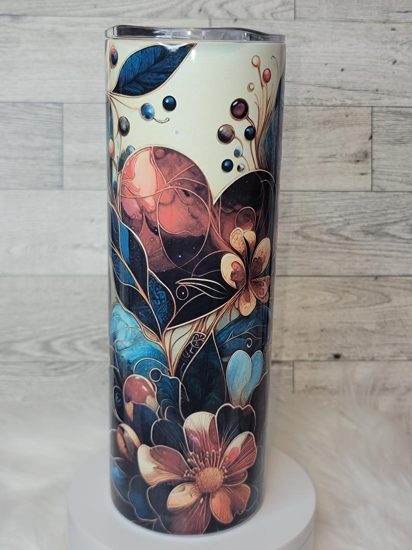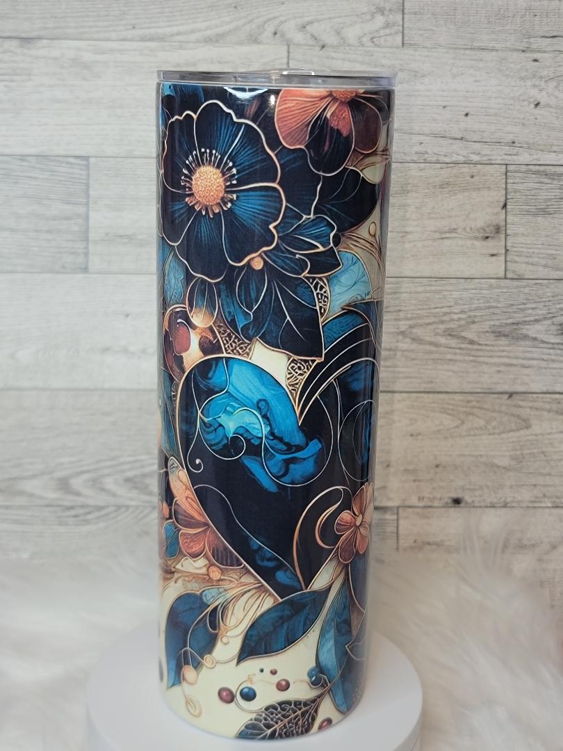 Hearts and Floral Bold Color 20oz Tumblers with lid and straw