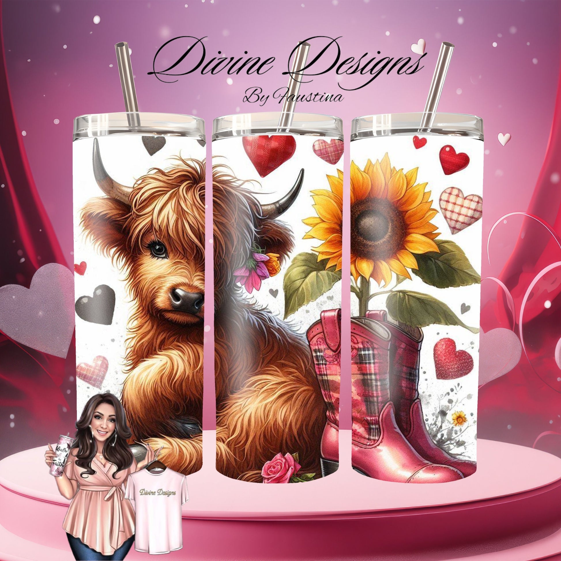 Highland Cow Valentines 20 oz Skinny Tumbler