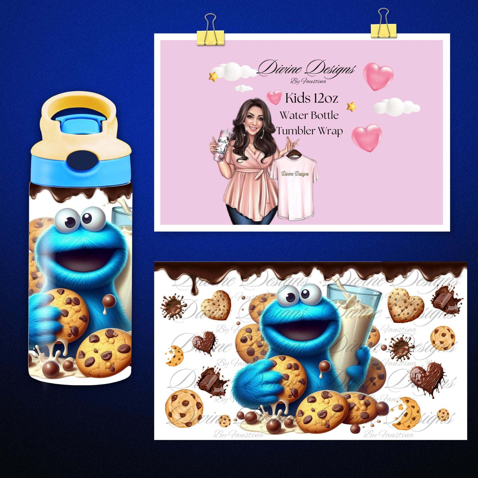 Kids Cookie Monster Cartoon 12 oz Water Bottle Tumbler Wrap digital download instantly ,The download is a simple PNG File that is 300 DPI High quality resolution for printing .