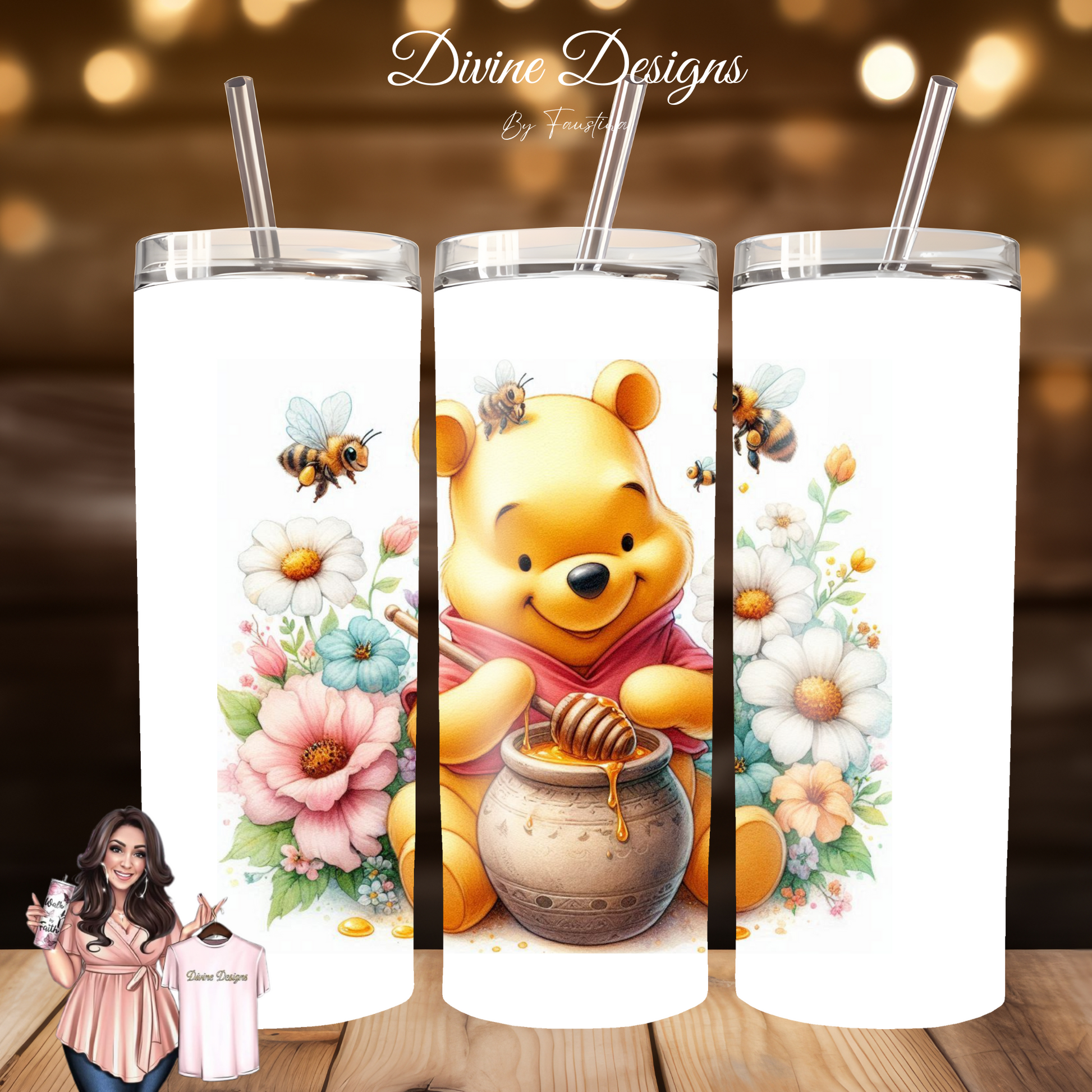 Stay hydrated and stylish with the Pooh Bear 20oz Tumbler. Featuring a charming design of everyone's favorite bear, this tumbler holds 20oz of your favorite beverage. Made with high-quality materials, it will keep your drink at the perfect temperature. Perfect for any Winnie the Pooh fan.