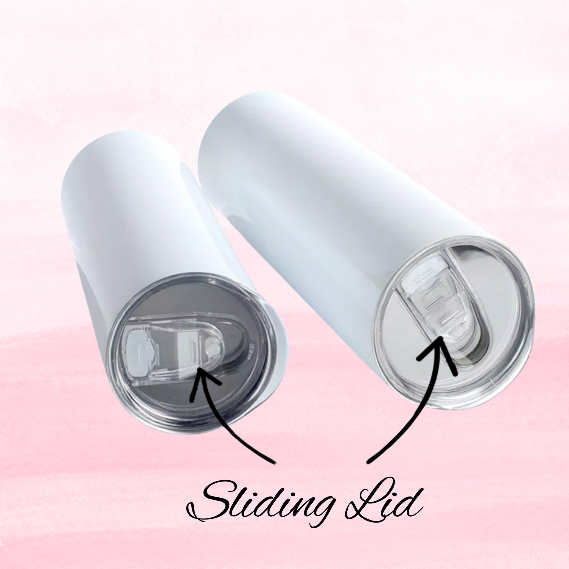 You can choose from a 20oz Straight Skinny Tumbler or a 20oz Skinny Duo that comes with a clear screw on lid with clear straw a