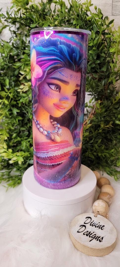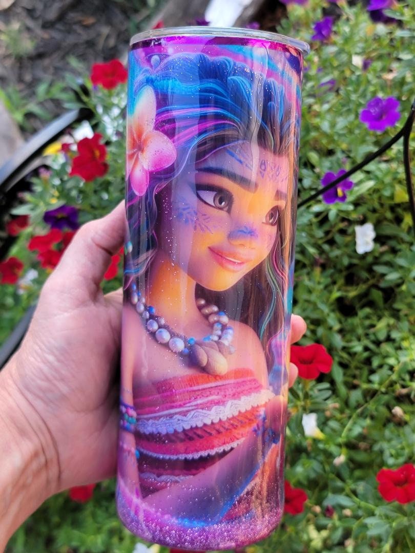 Princess Moana 20 oz insulated Skinny Tumbler Stainless Steel Sliding lid ,Plastic reusable straw ,Perfect for Gift giving , This IS a Physical tumbler !