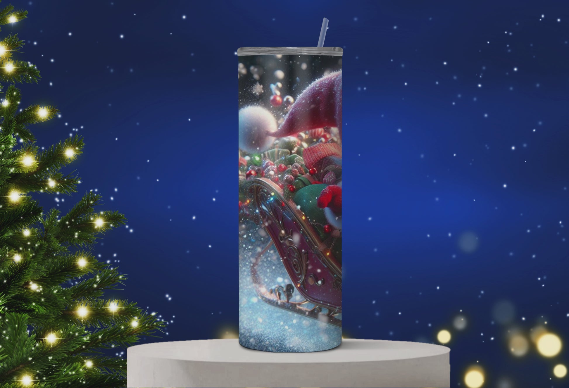 Experience the magic of the holiday season with our Santa's Sleigh 20oz Tumbler! Keep your hot drinks warm and your cold drinks chilled in this durable and festive tumbler. Perfect for any Santa enthusiast, this tumbler is sure to bring joy and cheer all season long. Happy Holidays!