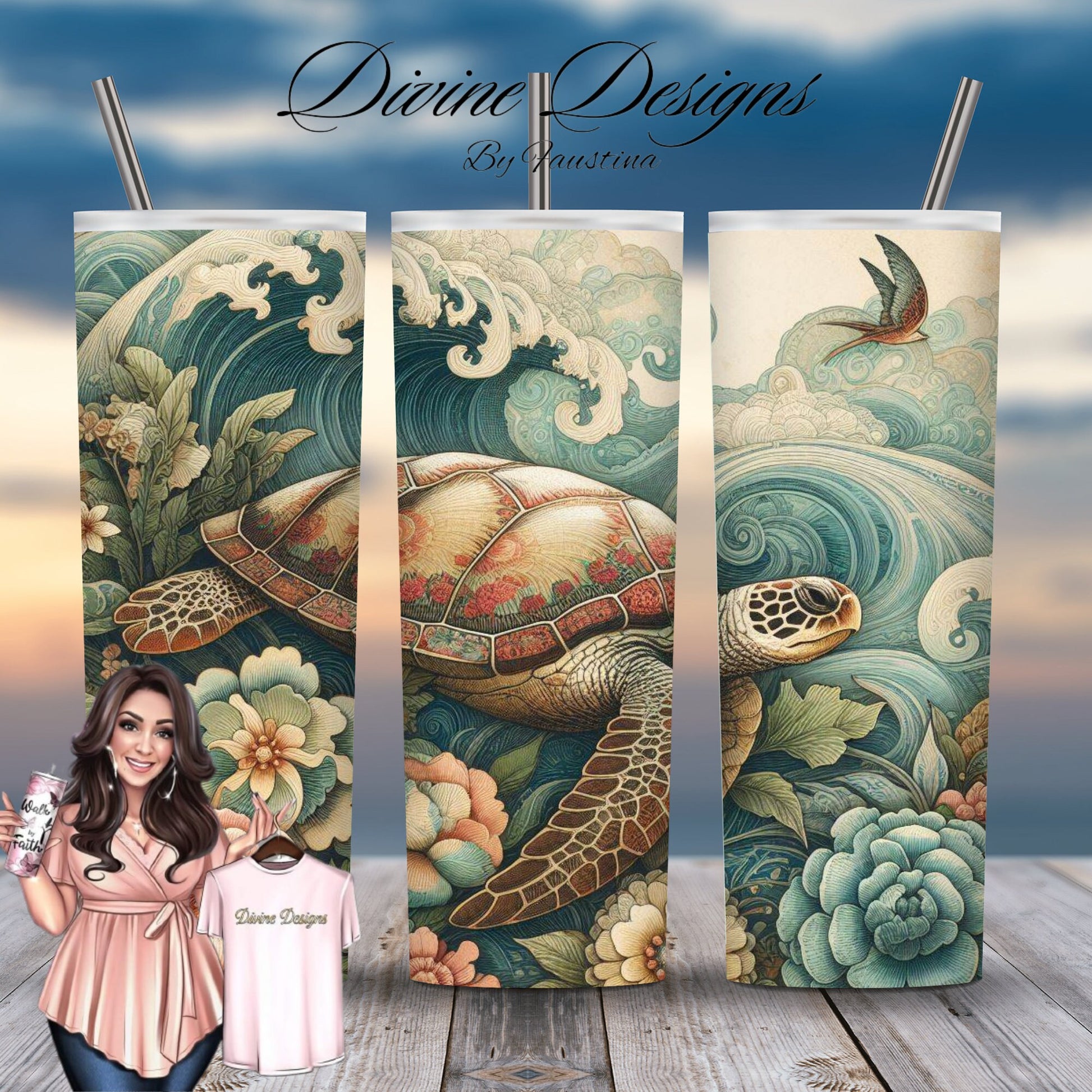 Elevate your drinking experience with our Sea Turtle with Flowers 20 oz Skinny Tumbler! Keep your drinks at the perfect temperature while enjoying the beautiful design of a sea turtle surrounded by vibrant flowers. Perfect for on-the-go and environmentally friendly. Take a sip and be inspired by the beauty of nature.