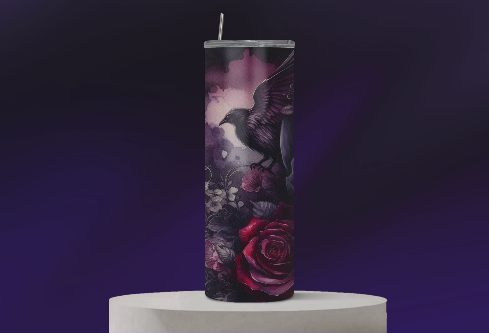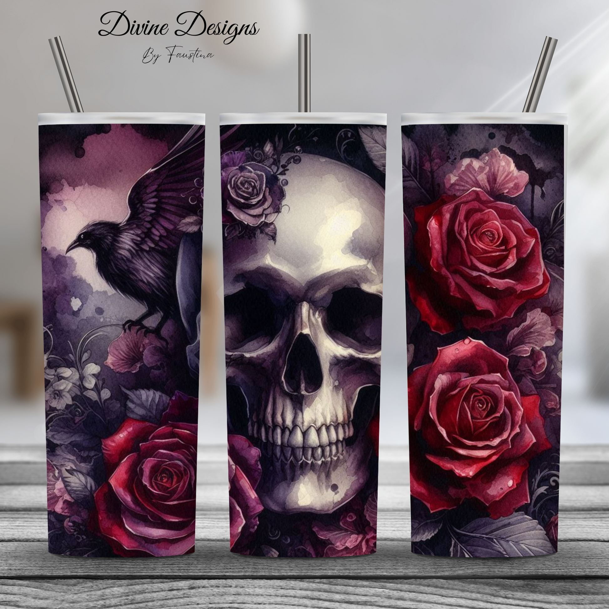 Skull and Roses 20oz Skinny Tumbler with lid and straw