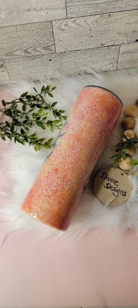 Skull Glitter Gothic 20 oz insulated Skinny Tumbler Stainless Steel Sliding lid ,Plastic reusable straw ,Perfect for Gift giving , This IS a Physical tumbler !