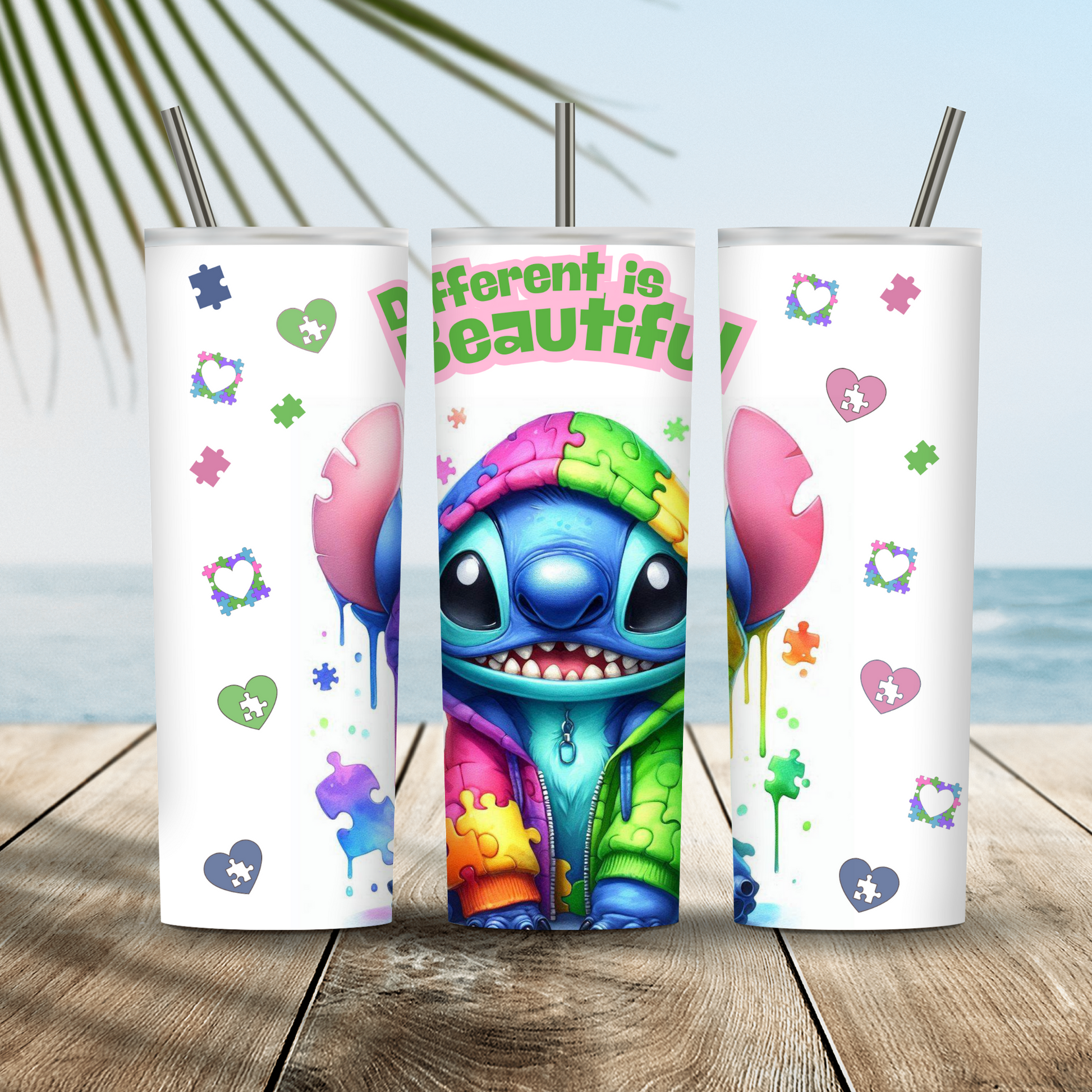 Indulge in your love for Stitch with our 20oz skinny tumbler, designed specifically for those with Autism. The sturdy lid and straw make it easy to take your drink on the go. Stay hydrated while showing your support.