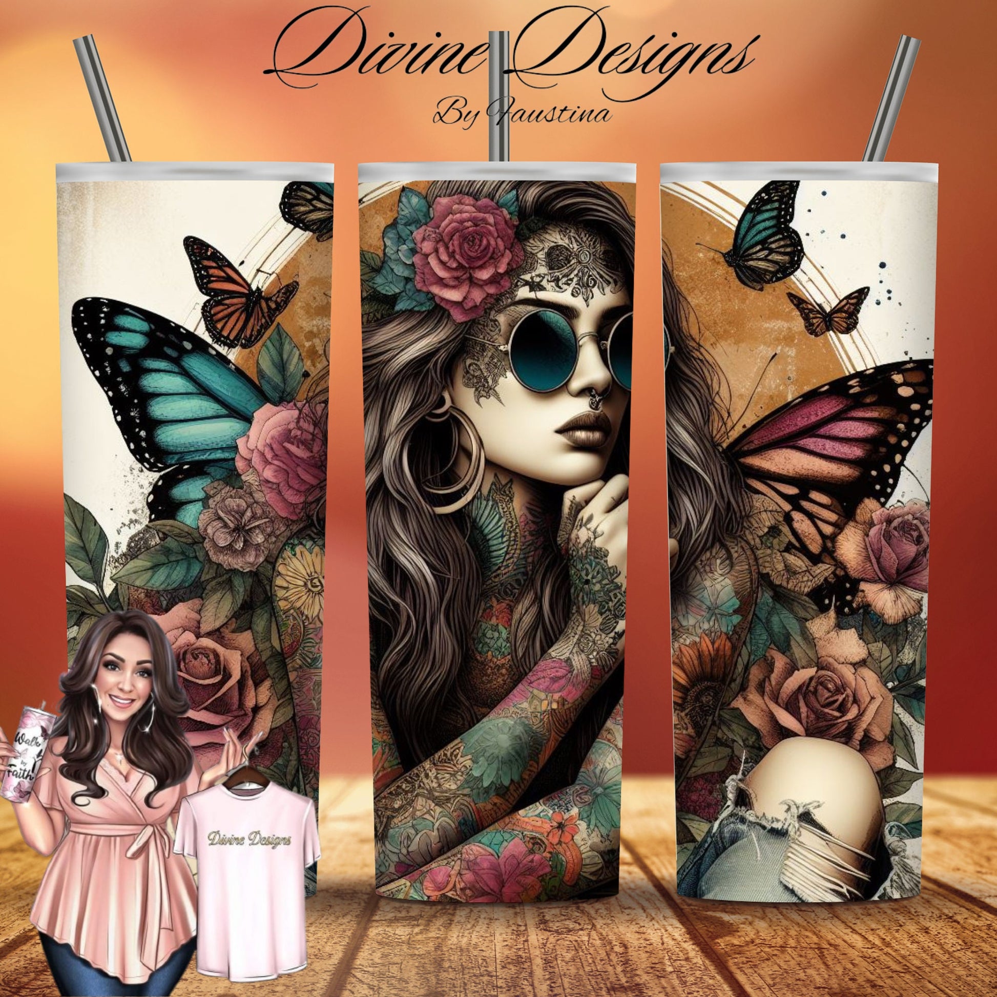Tattoo Lady Butterfly 20oz skinny Sublimation tumbler