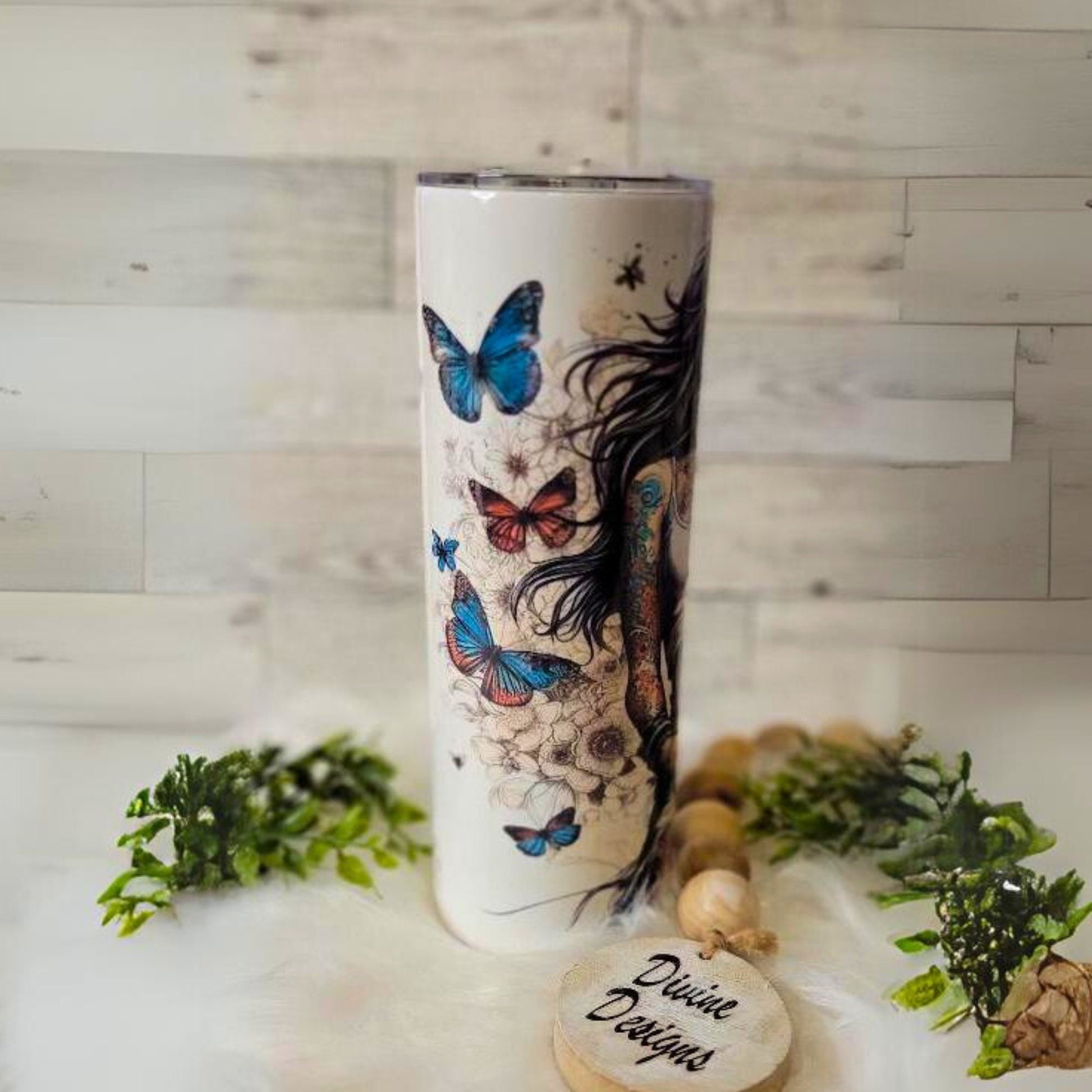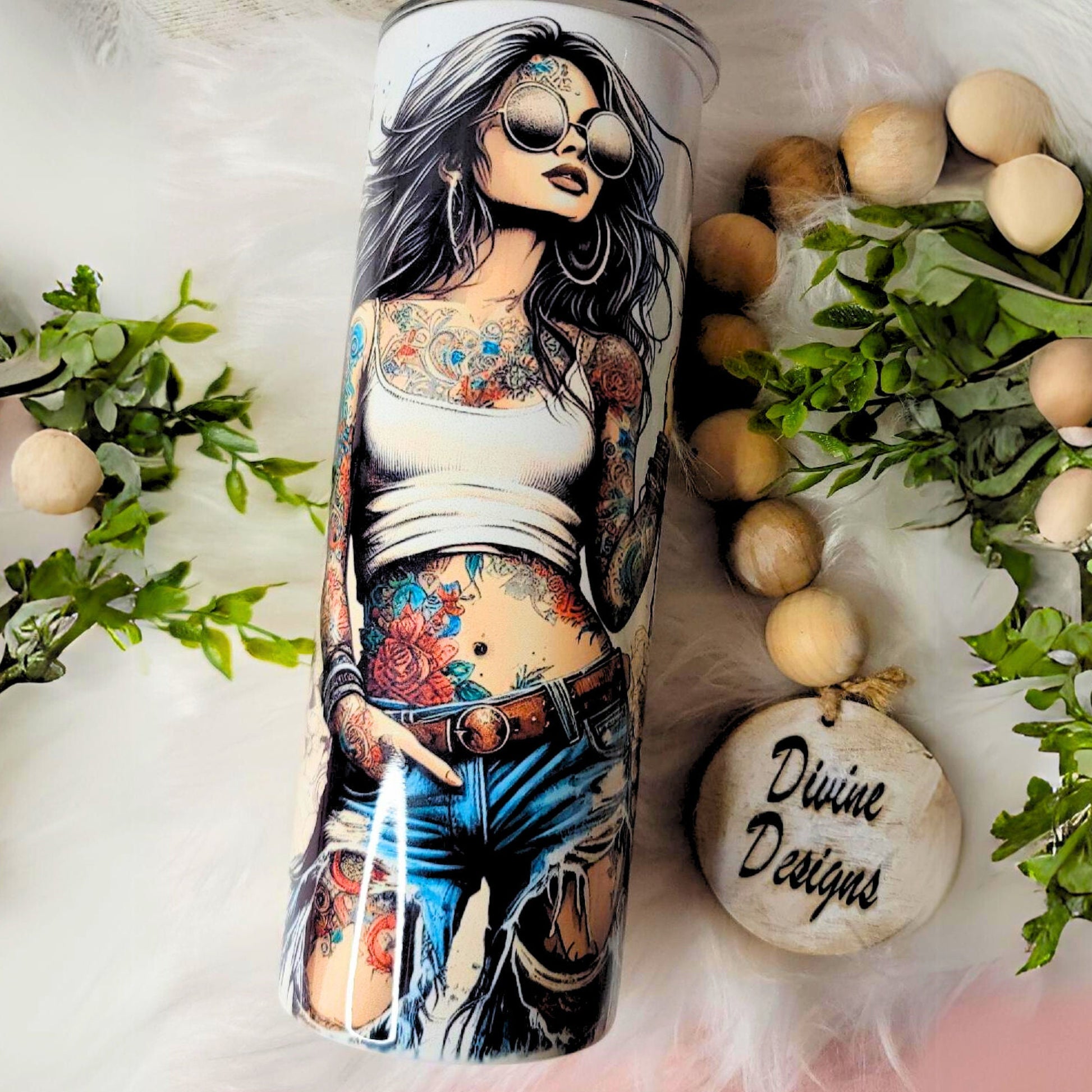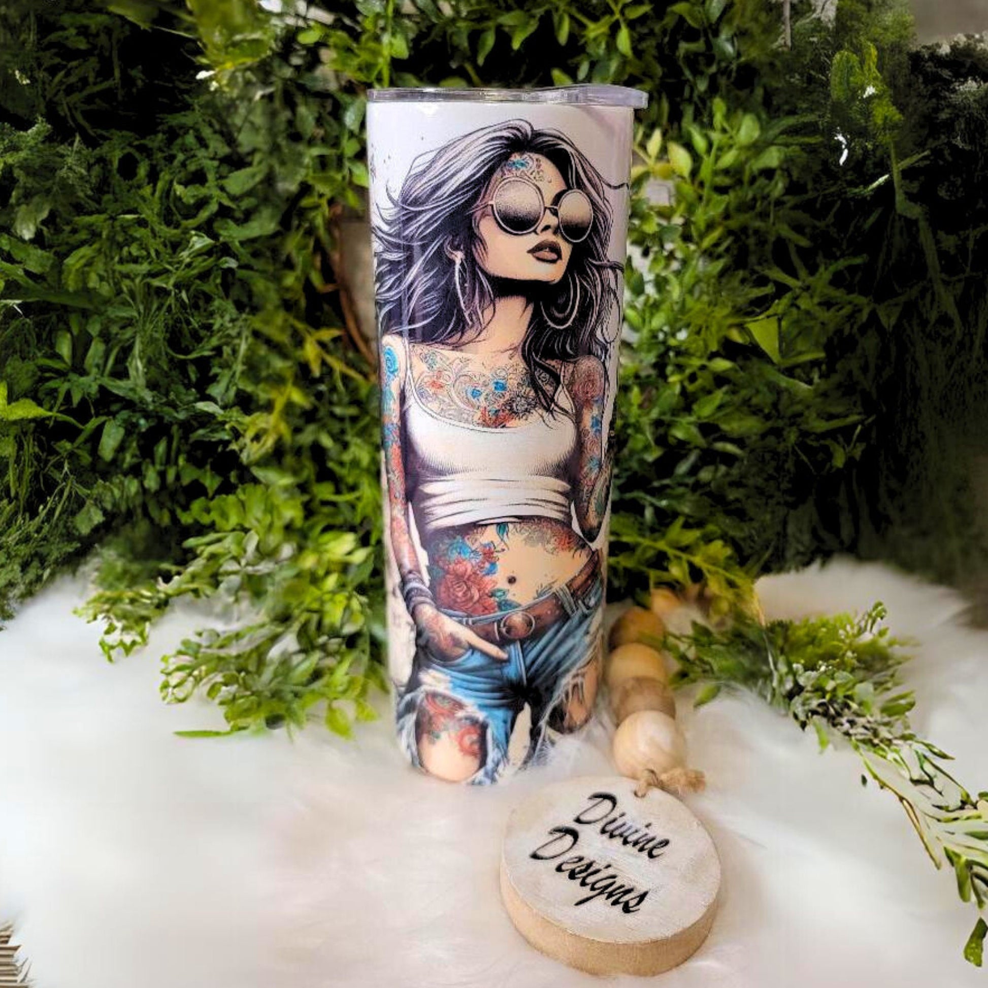 Tattoo Lady 20 oz insulated Skinny Tumbler Stainless Steel Sliding lid ,Plastic reusable straw ,Perfect for Gift giving , This IS a Physical tumbler !
