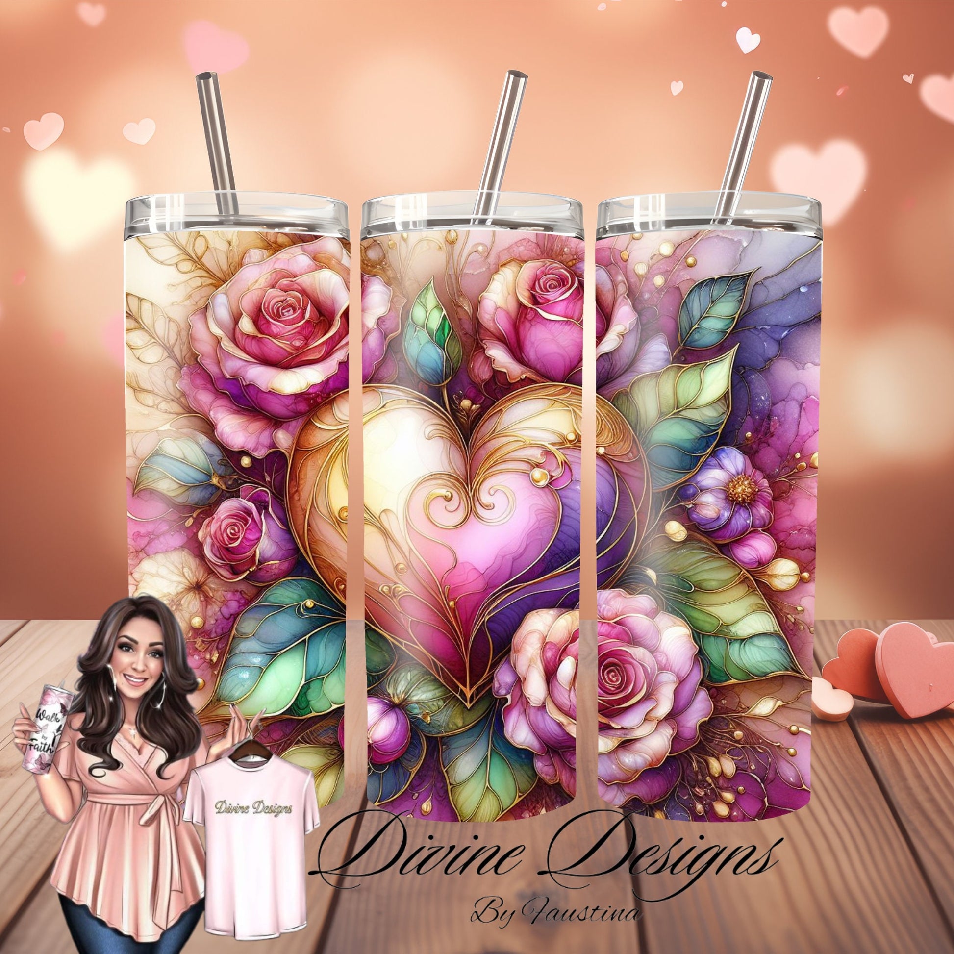 Fall in love with our Valentines Heart Floral Roses 20 oz Skinny Tumbler! This beautifully designed tumbler features a romantic heart and floral pattern that will make any drink more enjoyable. Its 20 oz capacity is perfect for keeping your drinks at the ideal temperature. Show your love for your significant other with every sip!